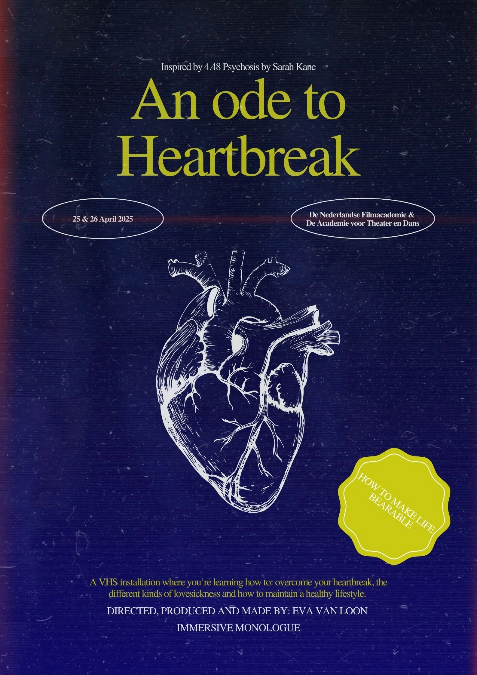 A VHS installation where you’re learning how to: overcome your heartbreak, learn about the different kinds of lovesickness, and maintain a healthy lifestyle.